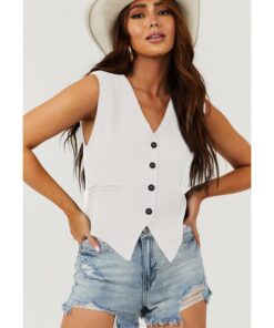 White Solid Color Button up V Neck Suit Vest - S