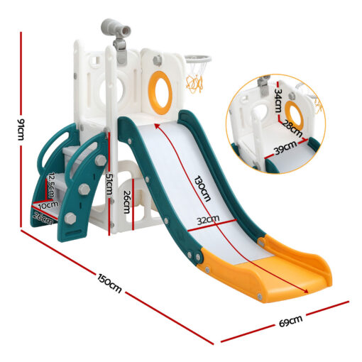 Are you looking for an engaging outdoor activity that keeps your kids entertained while promoting physical fitness? The Keezi Kids Slide Set with Basketball Hoop is designed to tackle the challenge of keeping children active and engaged, all while ensuring their safety. This multi-activity play structure combines a slide, basketball hoop, and telescope, providing endless fun and imaginative play opportunities.